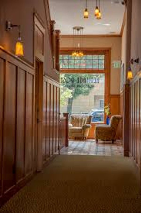 Once in, head down the stairs--straight down the hall, last door on the right #107 LL (LOWER LEVEL). You will enter into Mindful Being's PRIVATE lobby